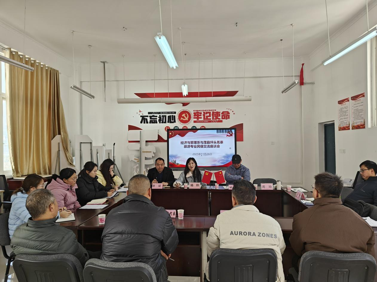 2.为搭建产教融合沟通桥梁,根据学校发展要求,在系部总体部署下,11月25日,旅游教研室在409会议室组织召开《旅游民宿专题交流会》。系部负责人杨玲、系部工作人员、旅游管理教研室所有无课教师与黄伟同志、茂县民宿行业代表共同研讨,余朋主持,学院纪委副书记、监审处处长唐斌同志列席参会。