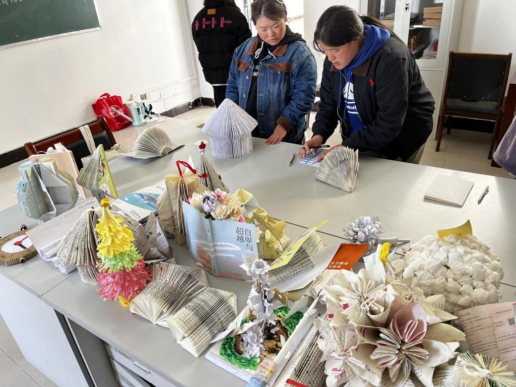 4.“书香新韵”旧书改造活动以创意为笔、环保为墨,让闲置旧书焕发新生。11月26日,我系于教学楼428室举办作品评选会,同学们巧用折叠、裁剪、拼贴等巧思,将泛黄书页转化为兼具美感与意义的艺术品,既实现资源循环利用,更传递绿色生活理念。