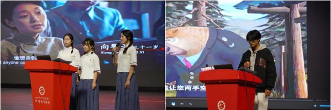 九支参赛队通过学院各系部层层选拔脱颖而出,精彩的演绎呈现了一场内容丰富、主题鲜明的视听盛宴。配音抑扬顿挫,表情惟妙惟肖,情感充实饱满,带领观众穿越不同时空、感受不同情感、体会家国情怀、激发爱国热情,充分展现了同学们的创造力与想象力,将活动现场的气氛一次次推向高潮。