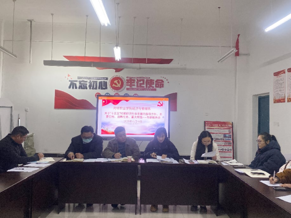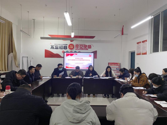 1、为深入贯彻落实学院党委关于期末工作的部署要求,扎实推进系部年度重点任务落地见效,12月15日,经济与管理系在教学楼409党政会议室召开2025年秋季学期第三次工作会议。会议由系党支部书记、副主任杨玲主持,全体专兼职教师参加会议;学院党委委员、宣传部(统战部)部长柯贤武,教务处处长伍杰莅临会议并指导工作。