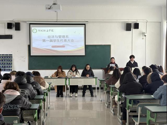 2、12月18日下午经济与管理系在教学楼420教室组织召开了系部第一次学生代表大会。以中国特色社会主义思想为指导,深入学习贯彻党的二十大精神及关于青年工作的重要论述,大会选举产生了新一届学生会主席团和学生会委员,凝聚青年力量,团结带领全系青年学生坚定理想信念,练就过硬本领,为服务同学成长成才、促进系部高质量发展贡献青春智慧和力量。