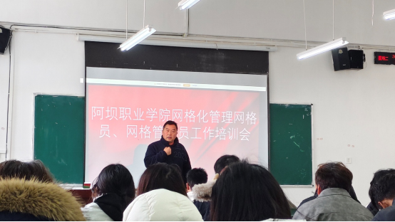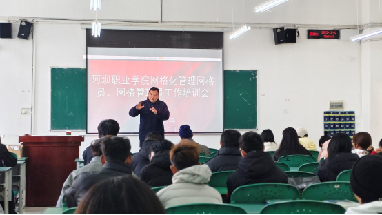 为深入贯彻“立德树人”根本任务,进一步推动学生社区精细化管理,提升学生自我管理、自我服务能力,促进学生行为习惯养成和校园文明建设,2025年12月2日,阿坝职业学院学生处组织召开了网格员、网格管理员工作培训会。会议由学生处陈永兵主持,64名网
