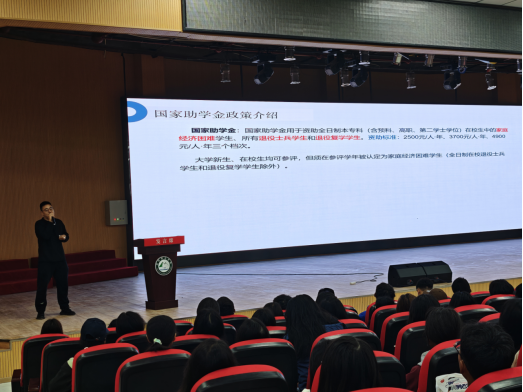 吴自剑老师在宣讲中强调,国家和学校始终高度重视学生资助工作,致力于构建全方位的资助体系,坚决不让任何一位学生因家庭经济困难而失学。同时,他勉励新生们要珍惜来之不易的学习机会,将感恩之心转化为奋进之力,努力拼搏,用优异的成绩回报国家和社会的关爱。