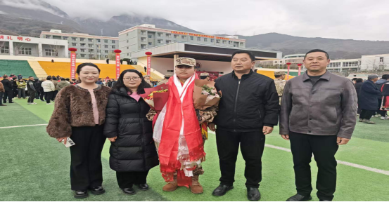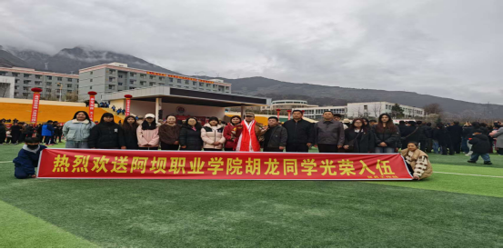 为弘扬拥军优属优良传统,鼓励青年学子投身国防事业,2026年3月15日上午,根据学校工作安排,学工部、教育系相关负责人及学生代表前往茂县中学,为我校即将应征入伍的胡龙同学举行欢送仪式,师生齐聚共送学子踏上军旅征程,现场气氛热烈而庄重。