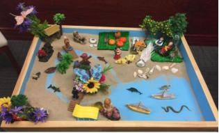 五是“触碰幸福”,组织彩虹跑、爱的抱抱、箱庭制作、植物拓印、关爱宠物、情绪宣泄、肌肉放松训练等活动,调用身体触摸觉,提升心理感受力。