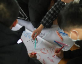 经过同学们近半小时的努力,各组都画出了具有各组特色的画,在熊国钰老师的组织下,各小组都展示了最终的画作,一起来欣赏一下吧~
