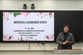 询工作,提高教师心育水平,提升学生心理健康素养。我院特邀电子 科技大学心理教育中心首席教 授李媛于我校开展《辅导员谈心 谈话技术与技巧》专题指导讲座。 学院领导,专兼职心理教师,学 工干事,专兼职辅导员等 30 余 人参加本次讲座。学工处处长陈