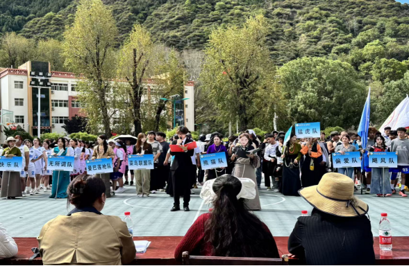 开幕式现场以极具热烈且具有民族特色的舞蹈开启这场体育盛宴,各班级参赛队伍井然有序入场,彰显各自的体育精神与青春气息。现场观众激情昂扬,欢呼声和掌声此起彼伏,彰显出比赛现场浓烈的体育氛围。裁判代表刘子文庄严宣誓,石梅副院长为本次比赛致辞,鼓励新生以积极的心态融入新的校园生活,教诲老生主动承担责任,做好榜样表率,为本次赛事注入奋进力量!